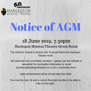 Past Events › Annual General Meeting Events Search and Views Navigation Show Events Search Events Search Events From Search Event Views Navigation View As ListMonthDay Next Events » June 2019 Harlequin AGM 18 June, 2019 @ 19:30 - 21:30 Harlequin Musical Theatre, 563r Pakuranga Road Auckland, New Zealand + Google Map Find out more » + Export Events
